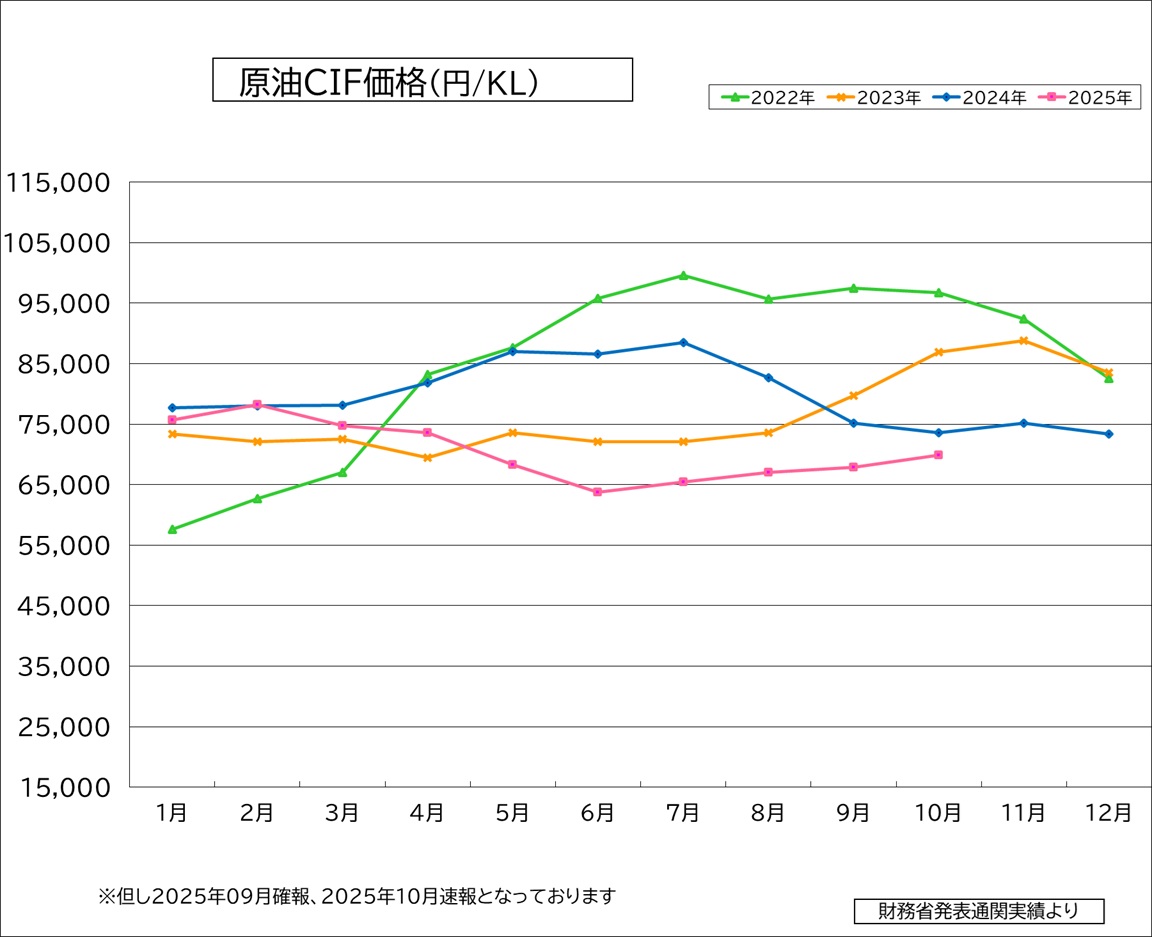 2022年以降の日本に輸入される原油価格の推移をグラフにしました。