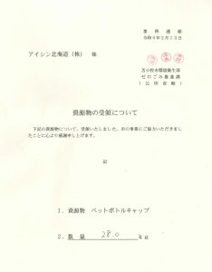 ペットボトルキャップ寄贈