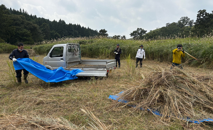 活動内容としては、約0.5haの範囲にわたるヨシやススキの除草・搬出を行いました。