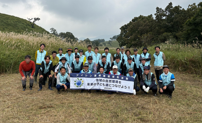 九州地区アイシングループでは、生物多様性への貢献を目的として、阿蘇満願寺保護区内にて希少種「オグラセンノウ」の保護活動として、下草刈り・集草および保護区外への搬出作業を実施しました。