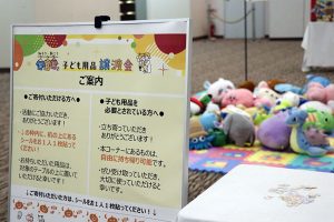 当日までにぬいぐるみをはじめ多くの用品が集まり、会場では子供たちが笑顔でお気に入りの品を選ぶ姿がみられました。
