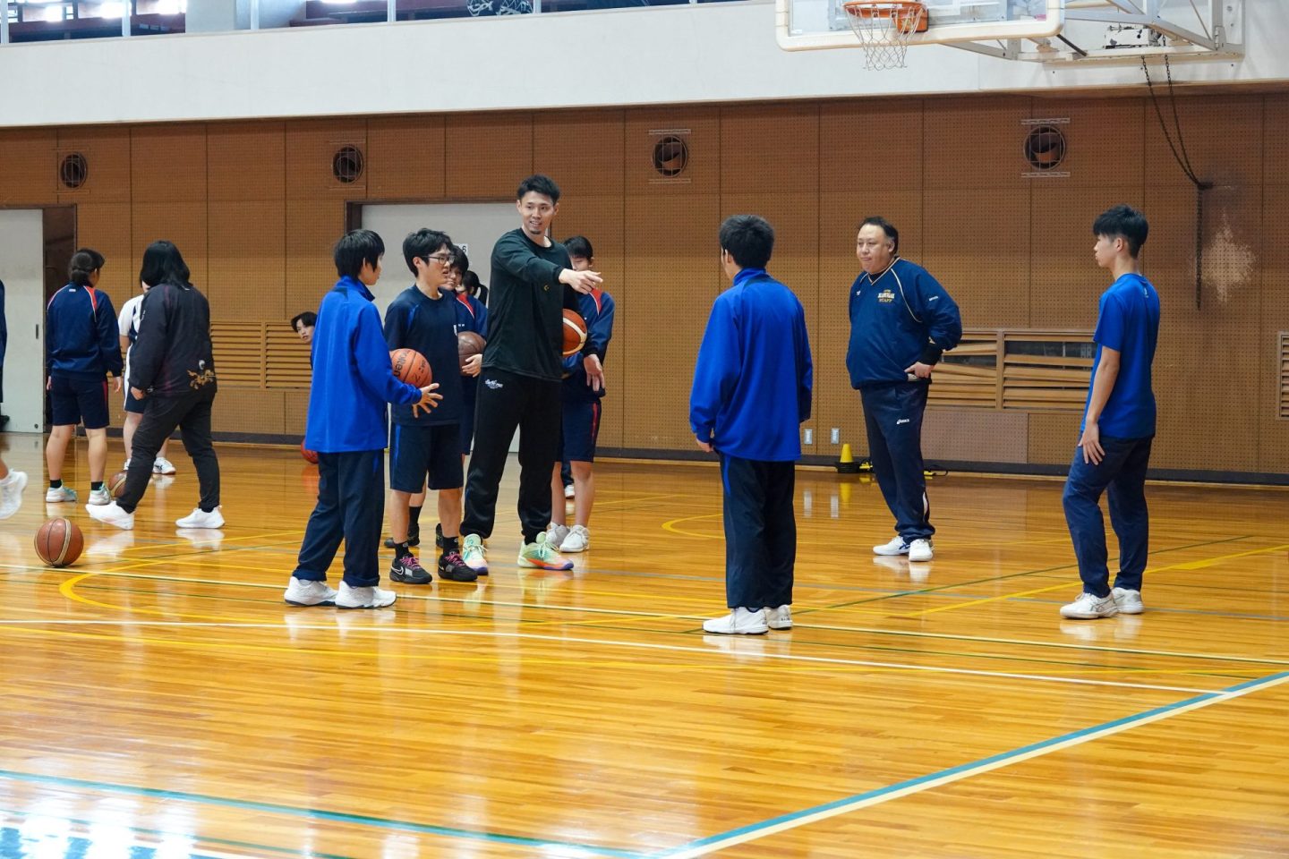 #10ジェイク・レイマン選手、#18角野亮伍選手、水野AC、望月ACによるクリニックに、シーホース三河アンダー16の選手がサポートとして入りました。