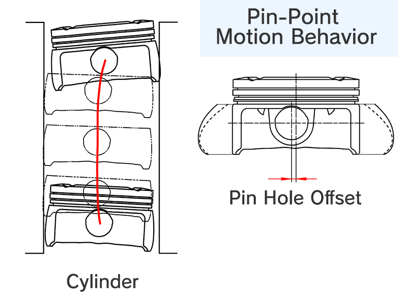 Poor piston posture (tilting) during its reciprocating motion can lead to issues such as increased “slap noise” from cylinder wall impact and higher oil consumption.
