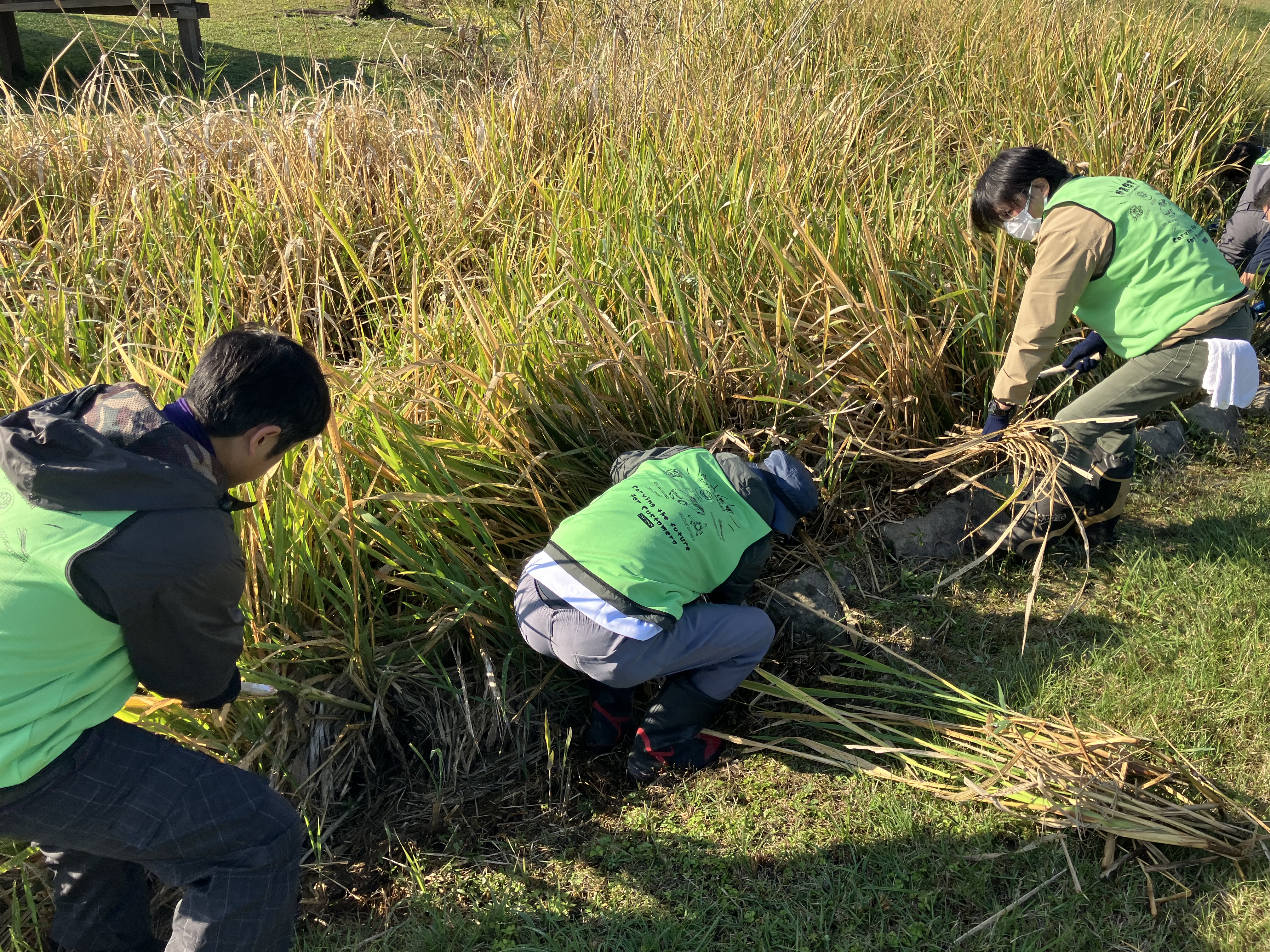 江津湖は熊本県で有名な大きな湖になります。今回は育ちすぎて水路をふさいでいる外来種の水生植物を除去する作業・ゴミ拾いになります。日が照る中、力作業となりますので汗と泥まみれになりながらも一生懸命水草の除去に取り組みました。