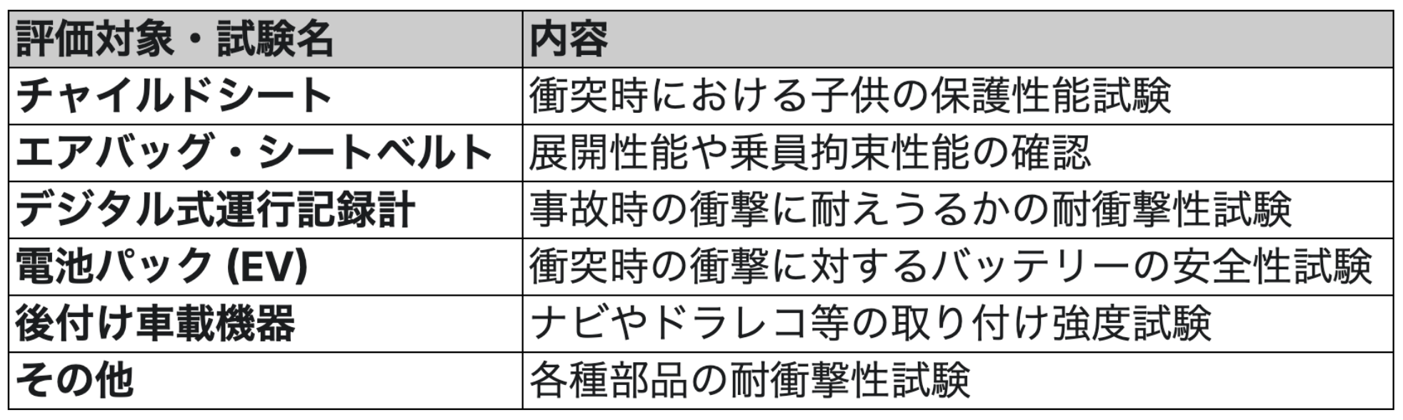 【主な評価対象と試験内容】