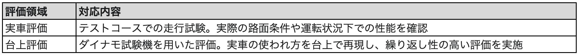 実車評価の知見を活かして開発実態に即した評価を提供できるのが私たちの特徴です。