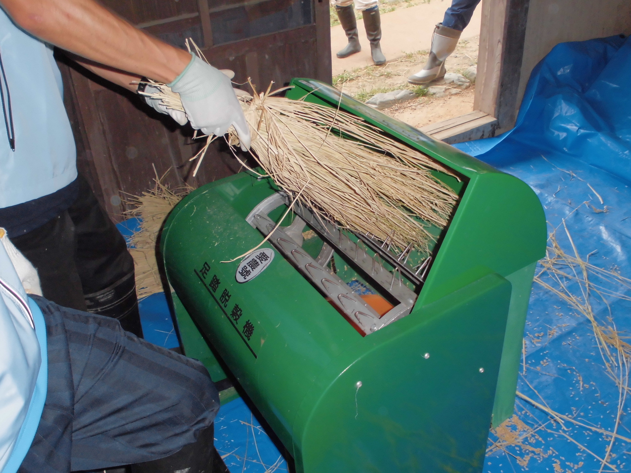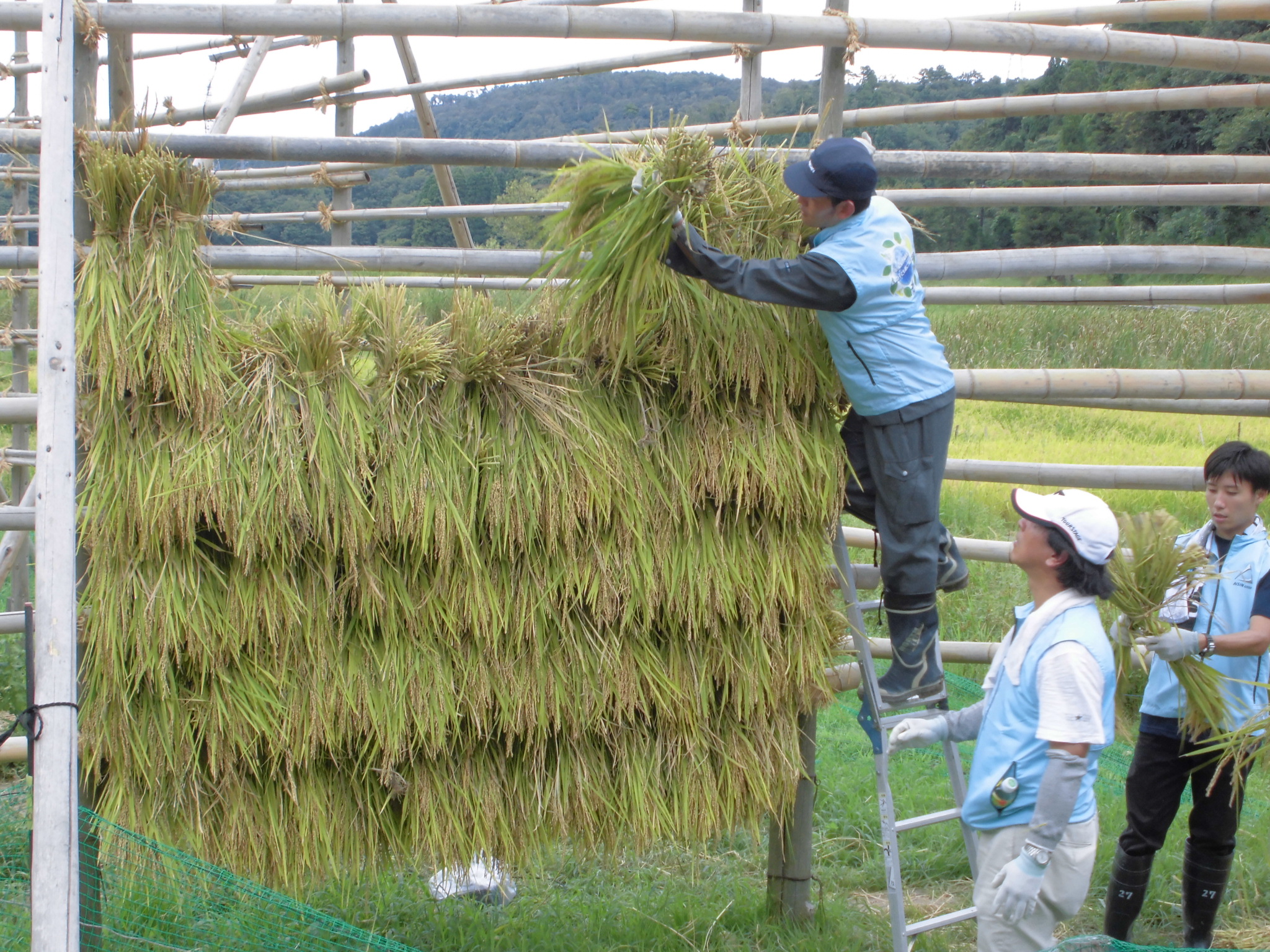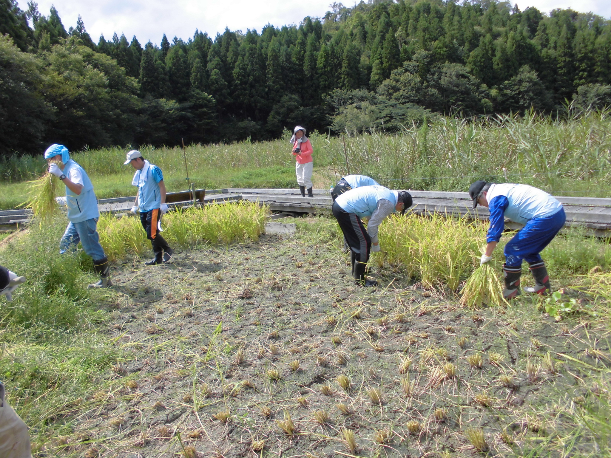 今回は、5月の田植えから大きく成長した稲穂の刈取りとはさかけ、脱穀作業を行いま