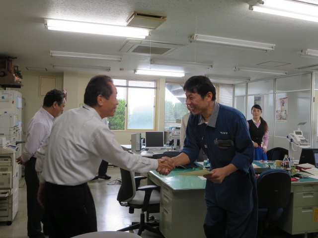 社長からお祝いと全国大会へ向け激励の言葉を頂き、社員一同大きな拍手で激励しました。