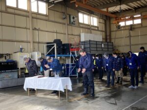 お祓い式には、山下社長と従業員が参加し、無事故で安全に輸送できるよう祈願致し