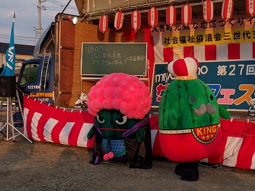 お祭りでは、ステージ上のイベントと、入善町のゆるキャラ「ジャンボ~ル3世&