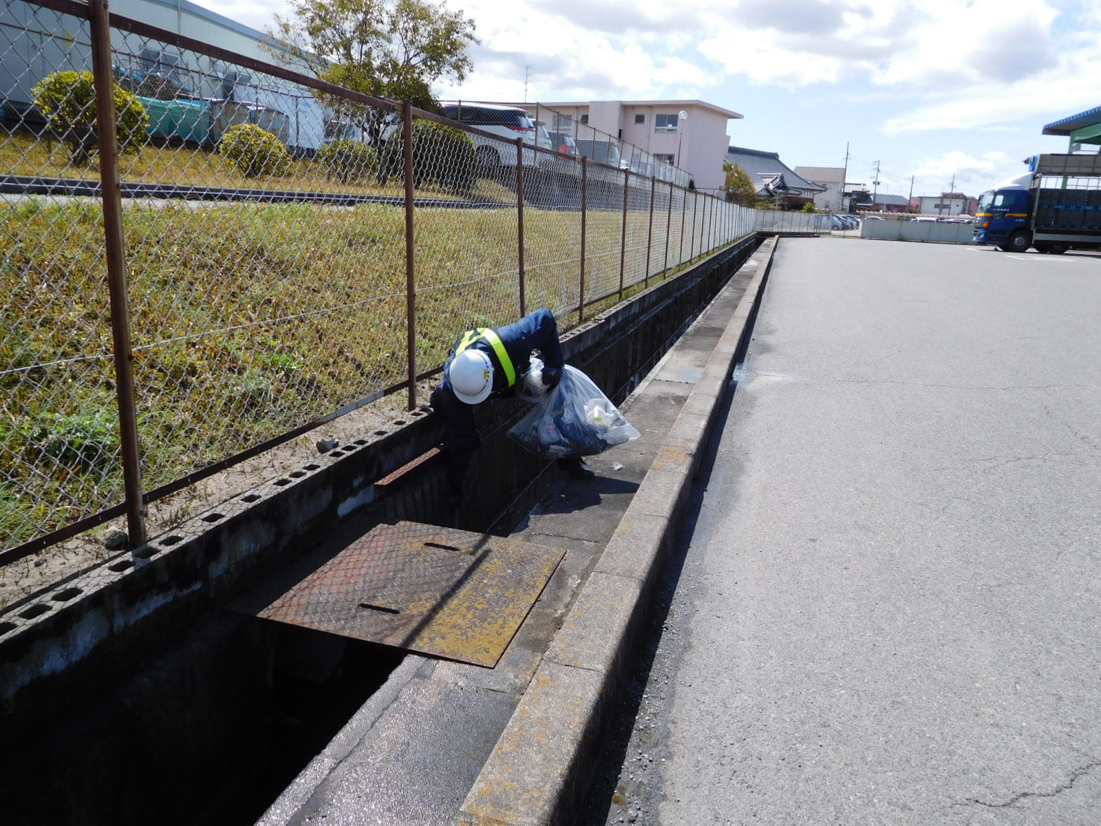 敷地周辺の道路や歩道、敷地内に落ちていたゴミ等を従業員が集めました。