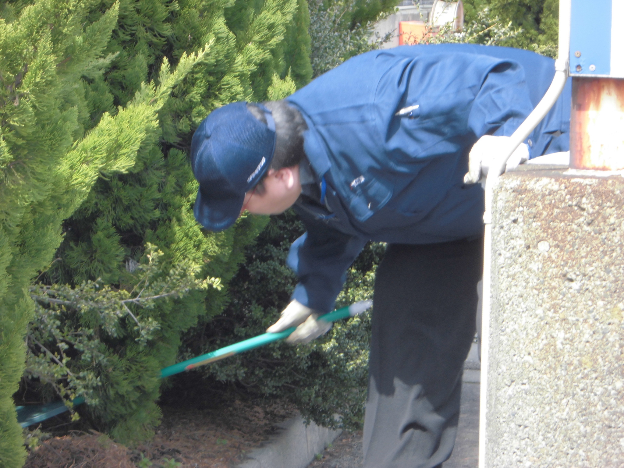 今回は、敷地内清掃の他に、冬季時に使用していたエアコンのフィルター清掃も合わせて