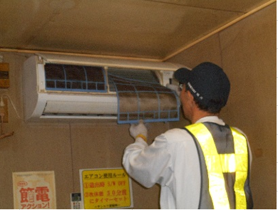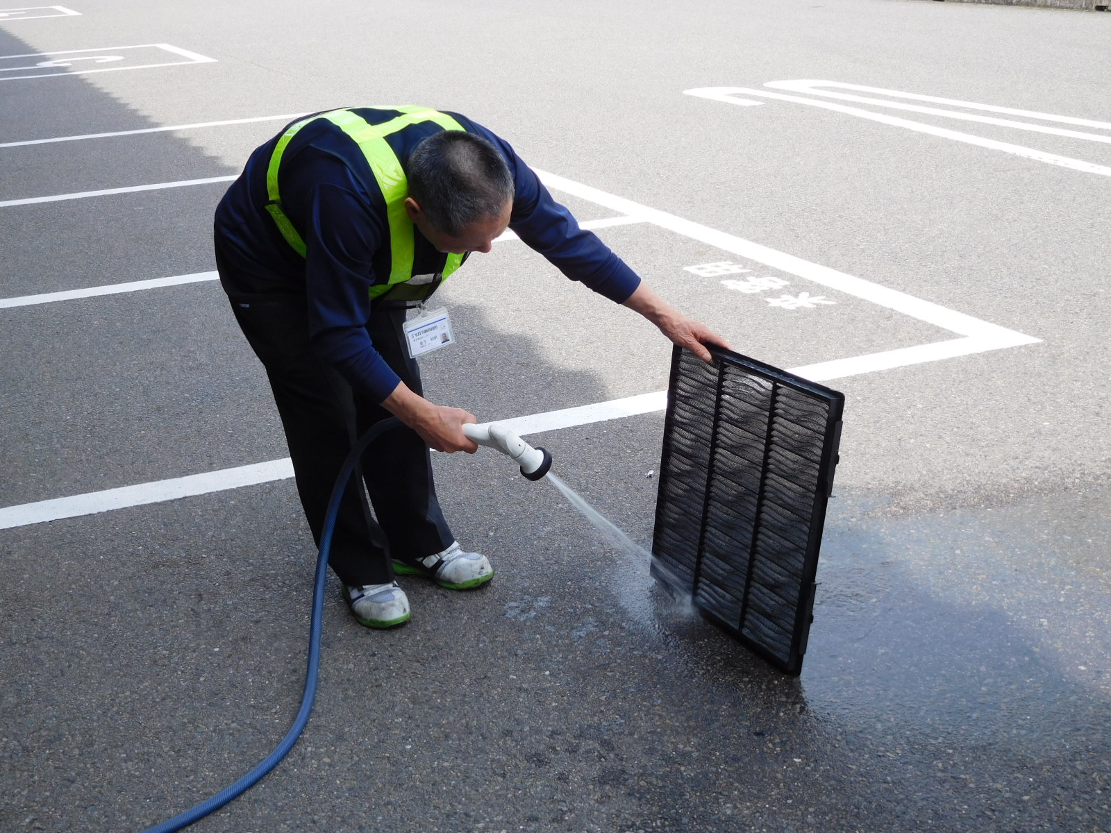 今月は敷地内外の清掃と7月に開始する夏季省エネ活動に向けて、エアコンのフィルター