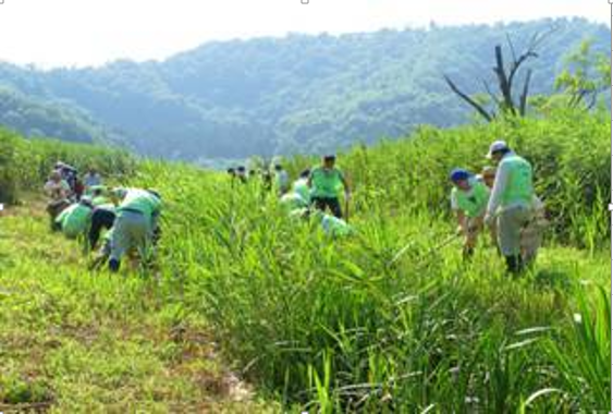 この日は梅雨明け後の猛暑日の作業となりましたが、「水環境のコミュニケーション活動を通じて地域へ貢献するとともに、そこにある生態系から日常生活や事業活動とのかかわりを学び考える機会とする」目的のもと、作業スタッフから江堀り作業のやり方を聞きながら水路の大部分を掘ることができました。