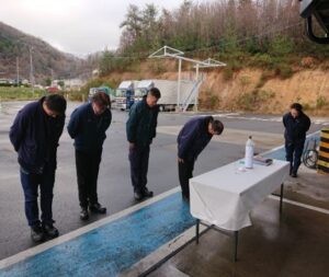 お祓い式には、山下社長と従業員が参加し車両の安全運行を祈願しました。