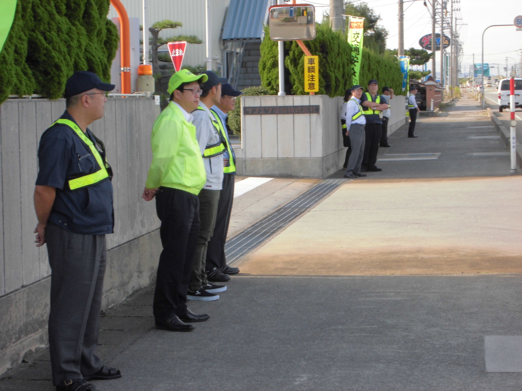 中、各営業所の通用門前で交通安全の立哨活動を実施しました。