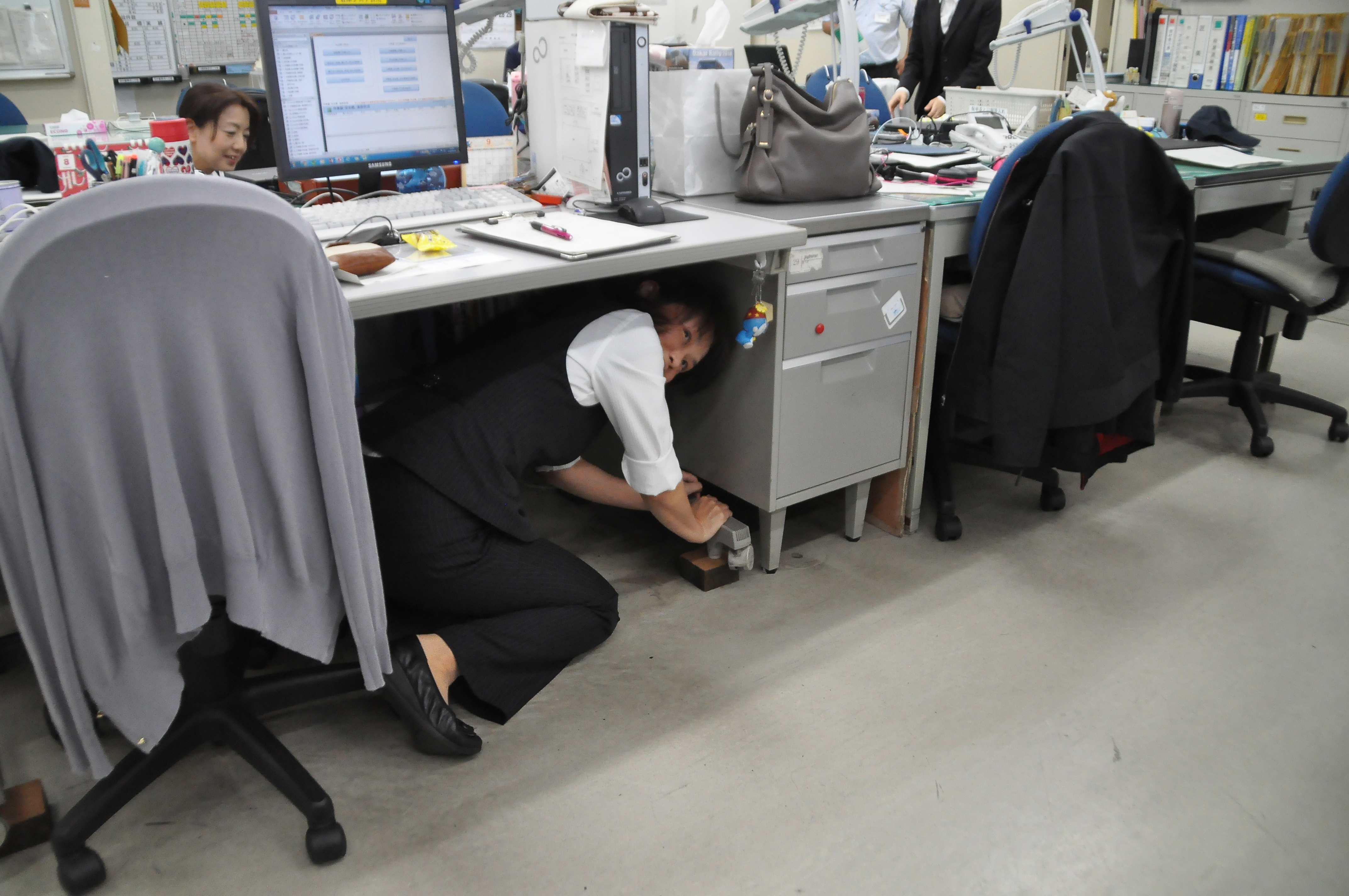 今年は、地震を想定した避難訓練を行い、日本各地で行われている「シェイクアウト訓練」を