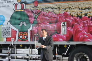 3月3日(月)入善町役場にて、ラッピングトラックのお披露目式が執り行われました。