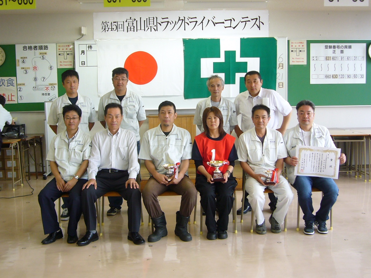 6月21日 富山県運転教育センターで「第45回 富山県トラックドライバーコンテスト」が行われ、当社から3人が出場しました。