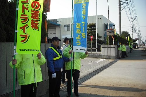 各営業所の通用門前で立哨し、ドライバーの方々に安全運転を呼びかけました。