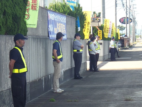 立哨を実施し、従業員や地域住民の方々へ安全運転をPRしました。