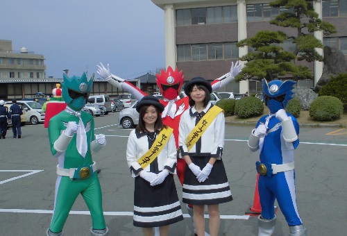 4月6日 入善町役場前で「春の全国交通安全運動出発式」が行われ、当社からも3名参加しました。