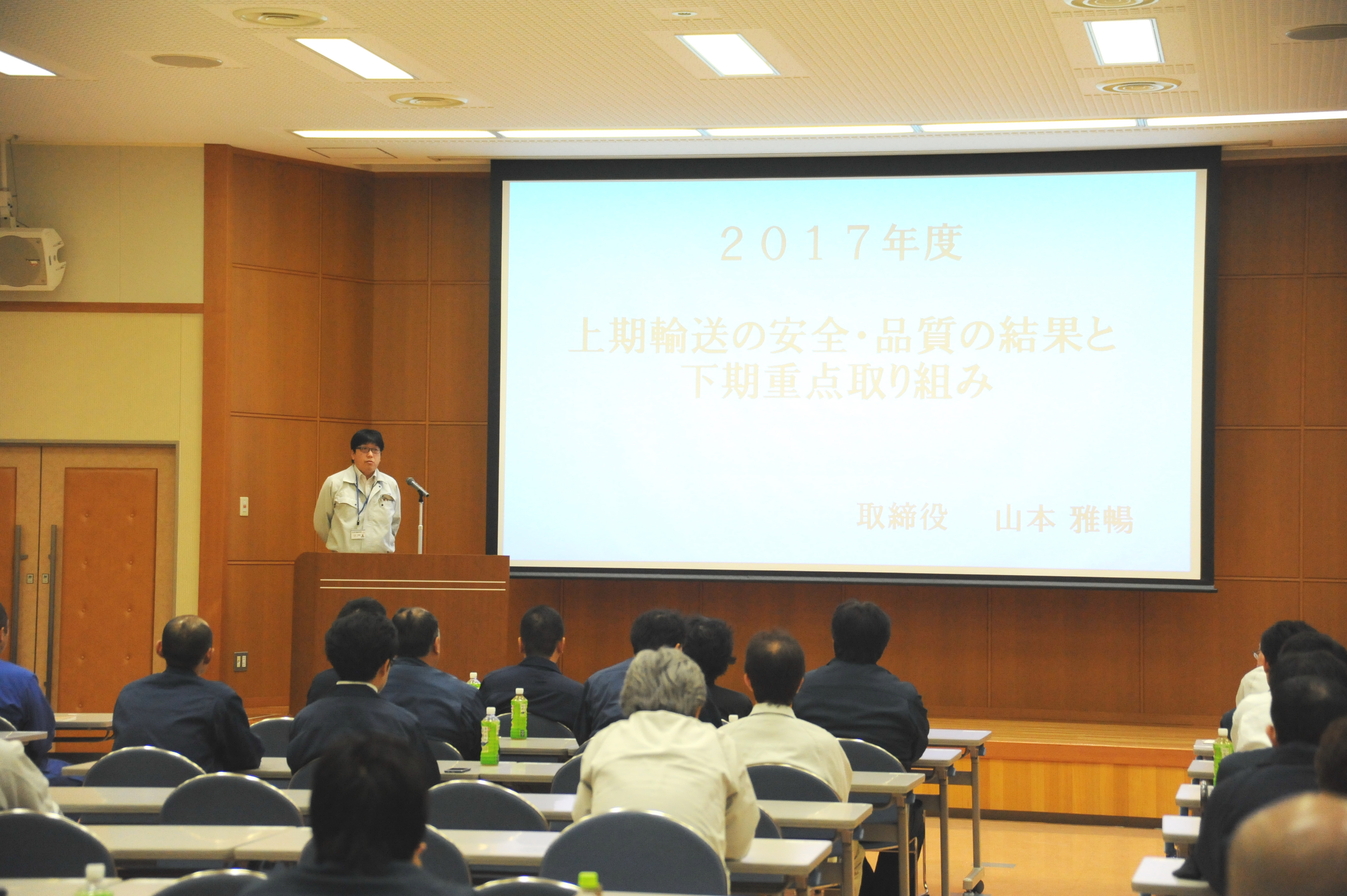 稲垣社長の開会挨拶後、山本取締役より2017年度上期の事故解析結果と下期重点活動方針