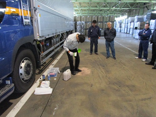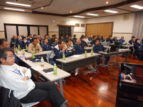 ドラレコ解析では当社のドライブレコーダーの「ヒヤリ・ハット」映像を流し、全員で安全運転・リフト作業の確認を行いました。