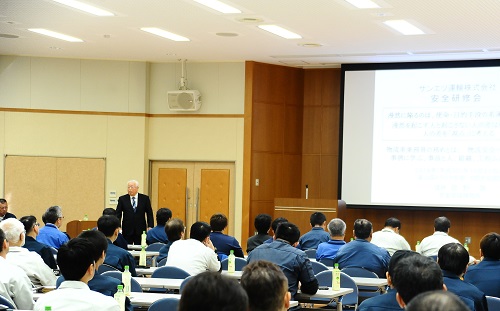 稲垣社長の開会の挨拶後、総括安全衛生管理者の山本取締役から上期事故解析結果と下期重点活動方針について報告がありました。