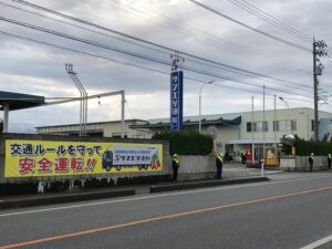 また期間中には、各営業所の正面入口前で交通安全を呼びかける立哨活動を行い、地域の安全意識向上に努めました。