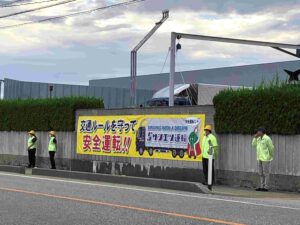 また期間中は営業所前でも立哨活動を行い、交通ルール遵守・交通安全を呼び掛け、交通安全意識向上並びに地域貢献活動を展開しました。