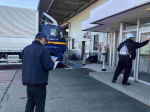 昨年同様、運行中のトラックの位置情報を把握できる機器を活用した乗務員の安全確認行い、またこれまで当社では、発災当日のみを想定したシナリオで訓練を行ってきましたが、今回は発災後2日目・3日目を想定したシナリオを新たに作成し、事業継続に必要な対応を実践しました。
