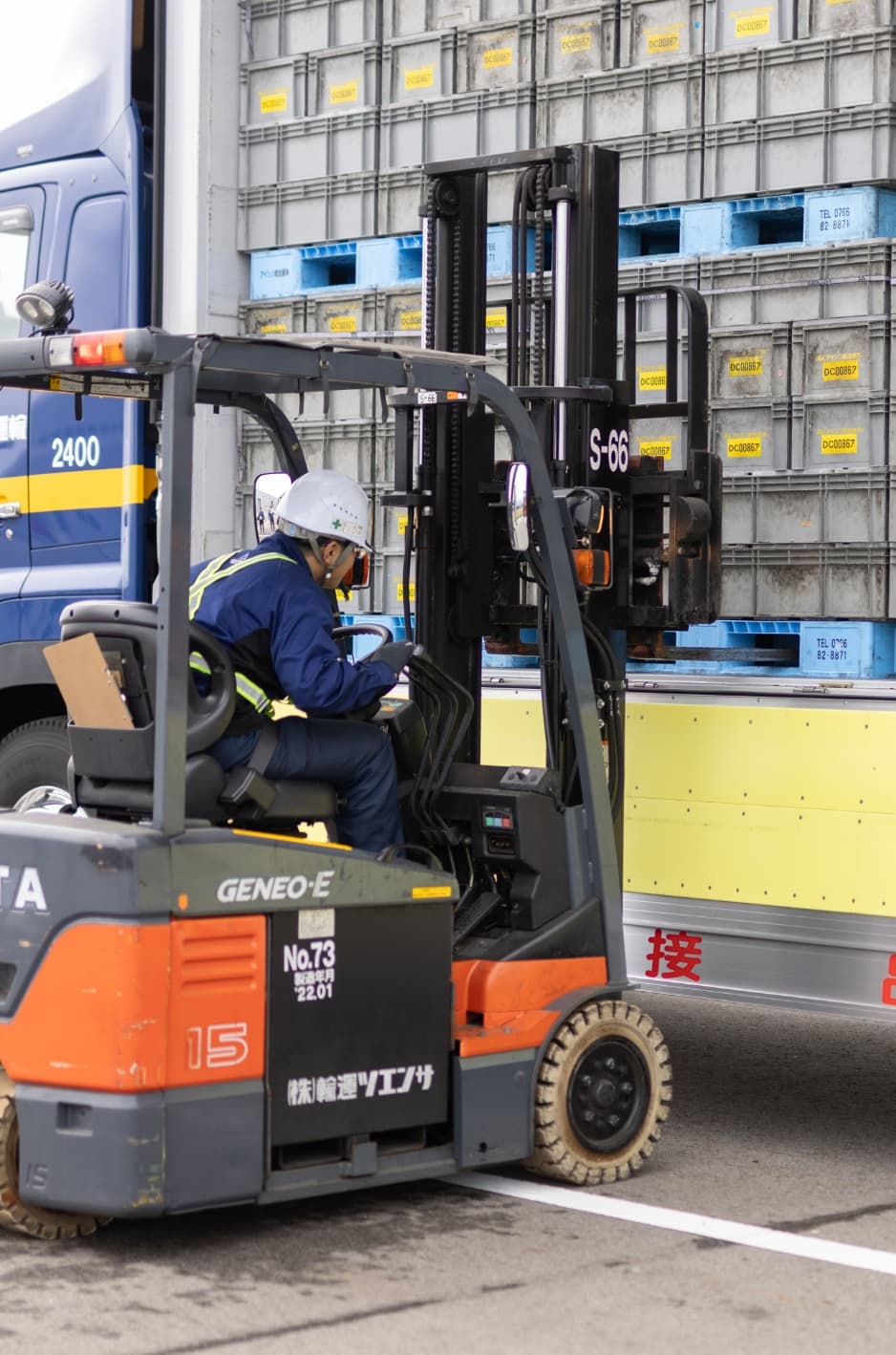 僕自身、大型トラックやフォークリフトの免許を取ることからのスタートでした。運送業が未経験な方、これから自動車免許を取る方には大型トラックでの仕事は敷居が高く感じられるかもしれませんが、できるようになるまで丁寧な教育をしっかりと受けられます!安心してください!