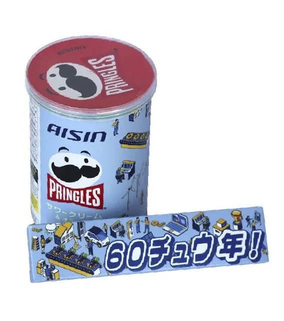 #アイシンのタグをつけて投稿した画面をご提示いただくと、アイシン60周年オリジナルデザインのお菓子(プリングルズまたはハイチュウ)をプレゼント。※デザインは変更となる場合がございます。