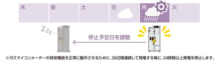自動で発電停止日を調整するサービス「停電時自立発電継続サポート」が利用可能です。