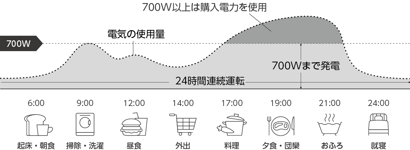 ライフスタイルに合わせて24時間発電するからムダなくおトク