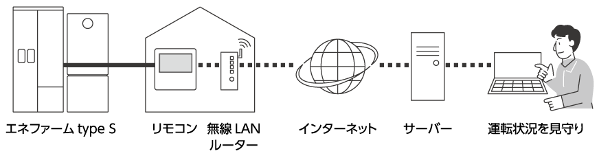 エネファームが正常に運転しているかを大阪ガスが遠隔で見守ります。