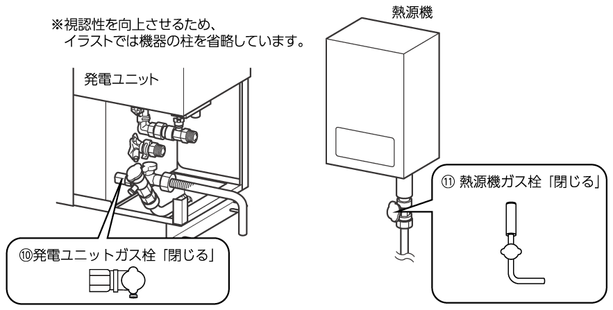 - 発電ユニットのガス栓を閉じます。