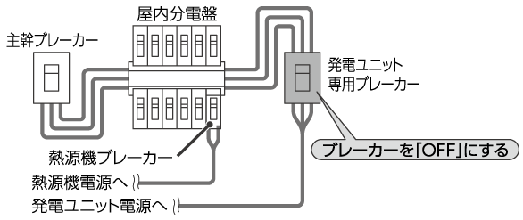 - 発電ユニット専用ブレーカーを「OFF」にします。