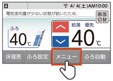 トップ画面で[メニュー]をタッチする