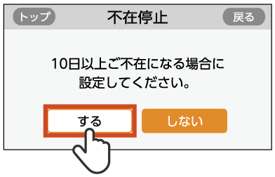 - 1か月以上の不在は、「1か月以上不在にする」をご確認のうえ、操作を行ってください。