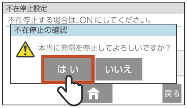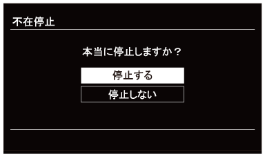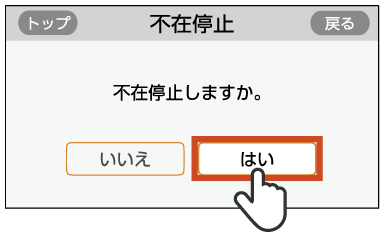 不在停止設定後5時間未満の場合は、上記の手順1から操作を開始し、手順4で[しない]をタッチすることで不在停止を解除することもできます。