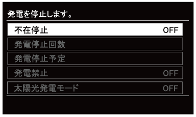 - 頻繁に起動操作・停止操作(発電禁止・不在停止)を繰り返すと、故障の原因になるおそれがあり、保証の対象外になる場合があります。機器の耐久性維持のため、停止操作は10回/年までを目安としてください。