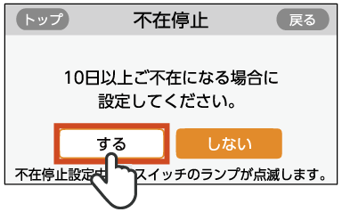 10日以上の不在で長期に発電・給湯を使用しないときに設定します。