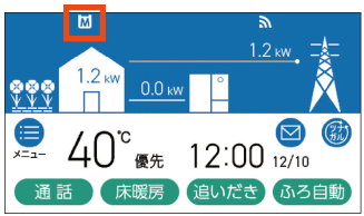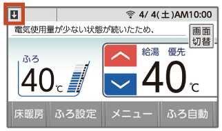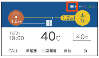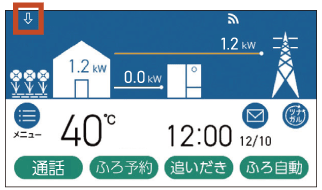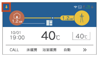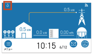 発電が停止し、リモコン画面上に[⇩]が表示されている。![]() |