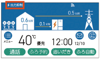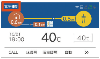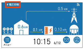 発電中、リモコン画面上に[電圧抑制]と表示されている。![]() |