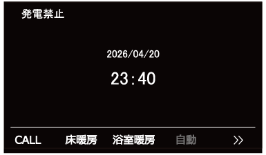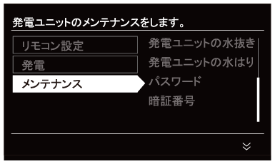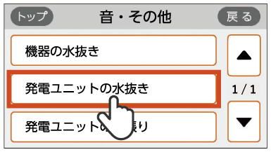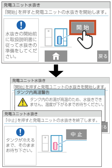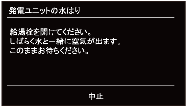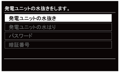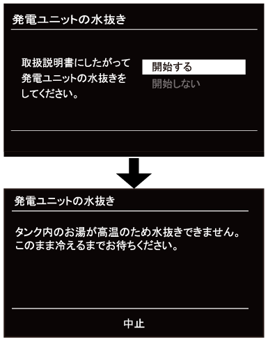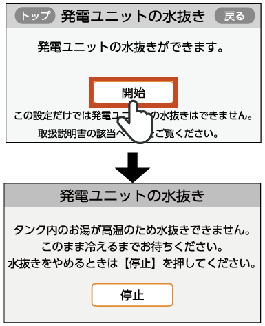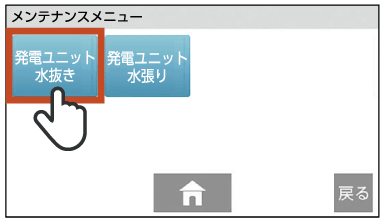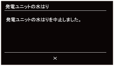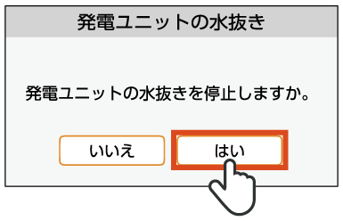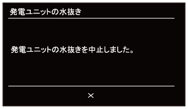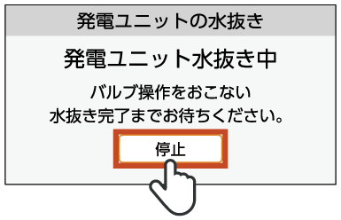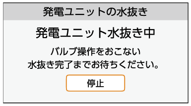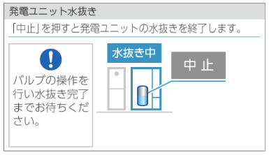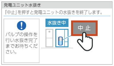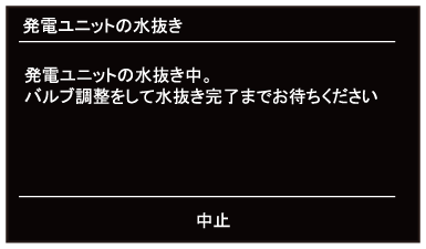 画面に[発電ユニットの水抜き]が表示されている状態であれば水抜きを停止できます。
