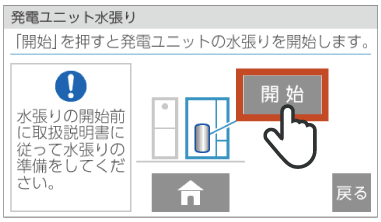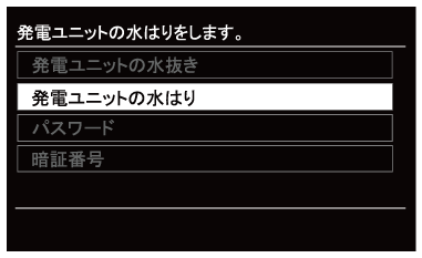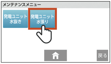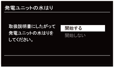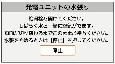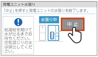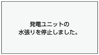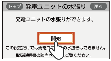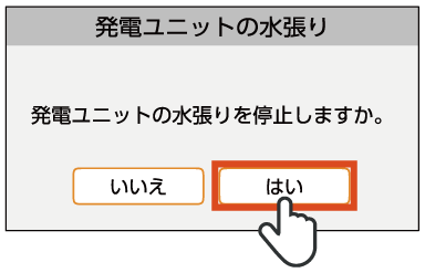 画面に[発電ユニットの水張り]が表示されている状態であれば水張りを停止できます。