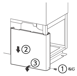 集合用設置架台を使用している場合は、ねじ(4本)を外し、フロントパネルを外してから作業をしてください。