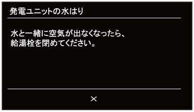 右画面が表示されたら、屋内の給湯栓(給湯蛇口)を開ける